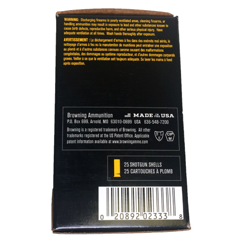 The Browning 12g 2 3/4" 1-1/8oz #7.5 shot dove and clay is sure to give you the extra edge in your favorite 12g shotgun without breaking the bank. Made using premium components, the Browning 12g dove and clay offers smooth operation and consitent performance resulting in more broken clays and downed birds. The Browning 12g 2 3/4" 1-1/8oz #7.5 shot dove and clay moves 1-1/8ozoz of lead shot at 1200fps, enough velocity to operate most semi auto shotguns without tearing up your shoulder. Sold in 25rd boxes and case sizes of 10 boxes per case for 250rds of premium Browning 12g dove and clay ammunition at a price that will keep you shooting longer than the competition.