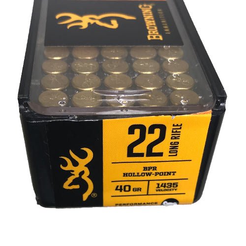 Tags: browning, bpr, 22lr, 40gr, rimfire, ammunition, high velocity, ammo, copper plated, lead hollow point