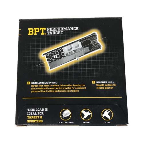 Browning 12 gauge BPT Sporting Clays shotgun ammunition uses High Antimony Shot that helps reduce deformation, keeping the shot consistently round. This provides for consistent pattern & hard hitting performance on targets. Browning 12 gauge BPT ammunition’s smooth hull allows for reliable ejection, giving you the edge on all your targets. This Precision 1 ⅛ oz. 7.5 shot browning ammo has a velocity of up to 1300 fps and power dram equivalent of three.