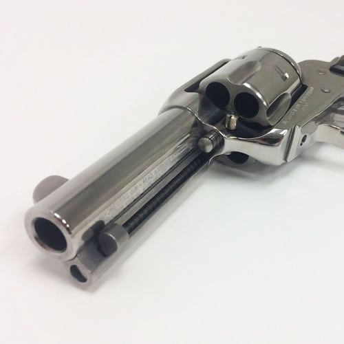 The Ruger Vaquero Birdshead Stainless in .45ACP is a compact western style revolver with birdshead style grip, which has been widely praised as one of the most comfortable natural pointing western style grips around. The large spur hammer is easy to manipulate and the single action trigger breaks clean and crisp. The Ruger Vaquero Birdshead stainless .45ACP is unique in that instead of being chambered in the more traditional .45LC which is a rimmed revolver cartridge, it is chambered in the .45ACP which is less expensive to shoot and allows those with semi-autos chambered in the same caliber to share ammo. The fixed blade front sight and trough style rear sight are rugged and easy to use. While the crescent shaped ejector rod head boasts easy use for unloading the Ruger Vaquero .45ACP.