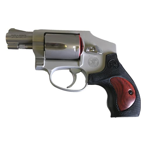 Tags: smith & wesson, 642 performance center, hammerless, revolver, matte silver, two tone, stainless steel, integral front sight, synthetic with wood insert grips, full moon clips