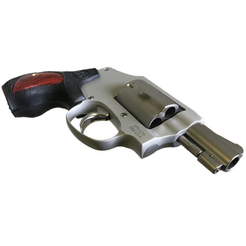 The Smith & Wesson 642 Performance Center is a hammerless performance revolver that reduces weight by way of an aluminum alloy frame. Chambered for the .38 S&W Special +P cartridge, it has a five shot cylinder and barrel liner that are constructed out of stainless steel. This Smith and Wesson 642 Performance Center is outfitted with a 1.875" barrel and weighs in at just under 1-pound. It has a custom, Synthetic grip with wood inserts, Chrome-Plated polished trigger and cylinder cut for full moon clips. Without a hammer spur, women can shoot through their purse without snagging and it also provides a smooth draw from concealment. This beautiful compact firearm is equipped with a notched rear and integral front sight. Finished in Matte Silver Stainless two-tone, this custom model Smith and Wesson 642 Performance Center has been hand cut, fit and fine tuned to provide the ultimate in a reliable self-defense revolver.