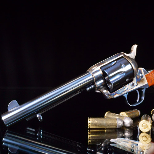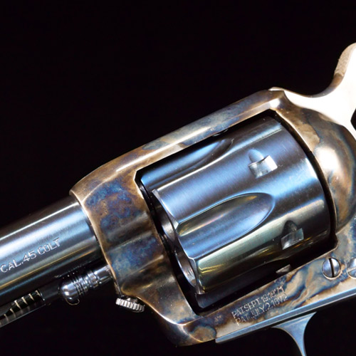 The single-action Army was most widely produced with a color case-hardened frame and blued barrel. Meanwhile, a nickel-plated version was issued to Indian scouts. And a bright charcoal blue finish was available from the factory. But with years of use, the old 6-guns took on a well-handled soft gray patina. All of these classic finishes are available in the 1873 Cattleman.