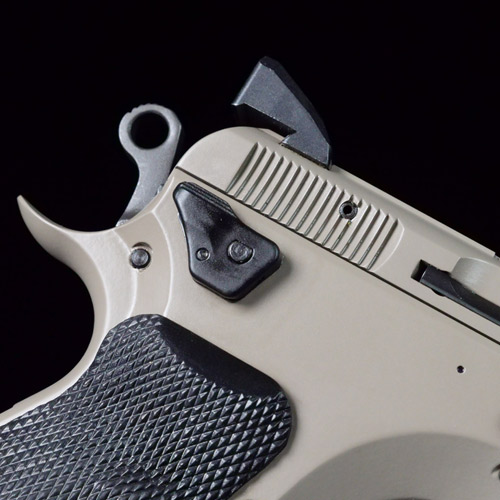 The Tactical variant of the SP-01 utilizes an ambidextrous decocker in place of the manual safety on the standard SP-01.