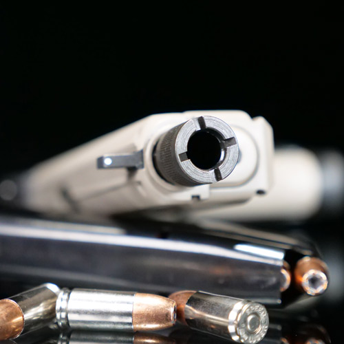 Part of the 2016 Urban Grey Suppressor-Ready Series, this pistol is clad in urban grey (a mix of grey and FDE). With threaded barrels, high suppressor sights with tritium lamps and extended capacity magazines, our Urban Grey pistols are a direct response to the many requests we get from customers for more suppressor-ready options.