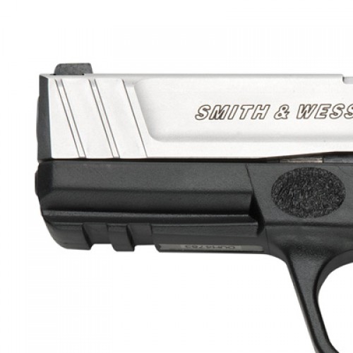 Smith & Wesson's SD9 VE semi-auto pistol operates with a striker-fired action that safely activates with a 2-piece trigger for consistent pull. This great handgun features an ergonomic textured polymer grip and aggressive front and back strap texturing. The gun has solid feel and points naturally. The Smith & Wesson SD9 VE semi-auto pistol has a distinctive 2-tone look with a black polymer frame and stainless steel slide. A standard picatinny rail under the muzzle is built into the frame for easy accessory attachment while front and rear serrations on the slide aid with operation. The Smith & Wesson SD9 VE semi-auto pistol combines value with enhanced features to deliver top-grade performance in a reliable option for home and personal protection.