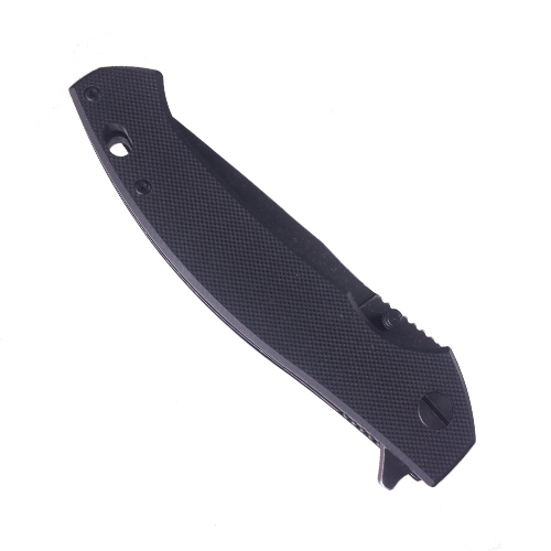 Introducing the SKIF Slim Folder Knife with G10 fiberglass and Plain edge black stonewashed blade. Brand new to the United States this highly durable highly rugged folding knife from the Ukraine will not disappoint. The SKIF Slim folder features a durable liner lock that is built to last along with a handle design that provides a reliable grip for cutting. The 3.5 inch blade features jimping on the spine and has a steel hardness of 56-58 and 5Cr15MoV steel grade. Knives made of 5Cr15MoV steel are extremely easy to sharpen even in the field and are well balanced with regard to cutting and anti-corrosion properties.  If you are interested in a high quality knife to add to your EDC (Every Day Carry), as a utility piece, for defense, or out in the woods this is definitely a piece you need to consider.